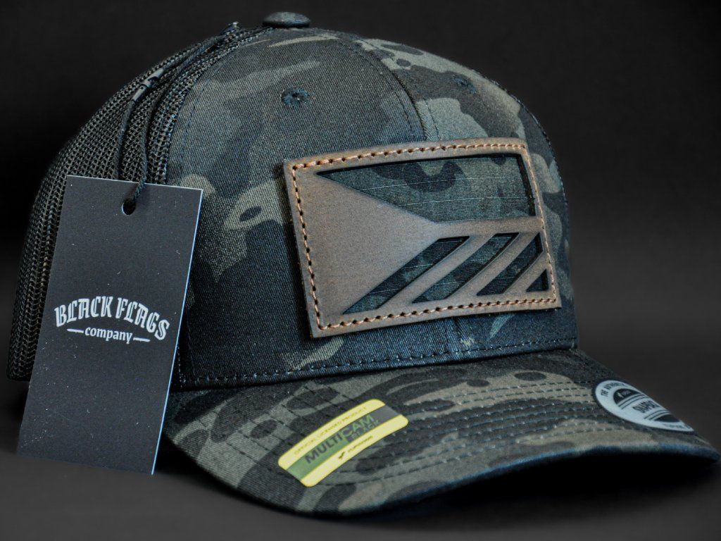 BLACK MULTICAM TRUCKER HNĚDÁ KOŽENÁ VLAJKA
